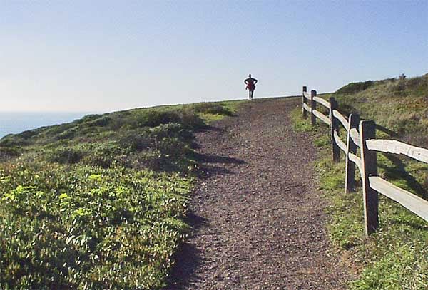 December light, when the sun's out, may be the most beautiful of the year. The day ends early, of course, and the sun is low over the horizon, creating a raking effect with long shadows and a mysterious white-gold color. Here is Barbara, during a Sunday walk on the bluffs above Rodeo lagoon. I hadn't been here for a while at this time of year, and I had forgotten how beautiful it is. —JDL